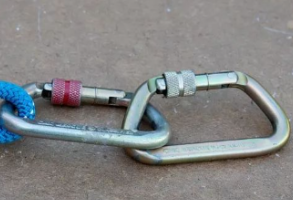 事實上確實如此,因為安全鉤上的鎖閉裝置是移動的,只要不碰到其他堅硬的物質(zhì),就不會自由旋轉(zhuǎn),但是如果再在兩把連接好的鉤子后面懸掛上一根安全繩,繩索就處于不安全狀態(tài),一旦鉤子鎖閉功能失效,安全繩就會掉落,所以我們盡量將鉤子掛到完全鎖閉的連接環(huán)上。