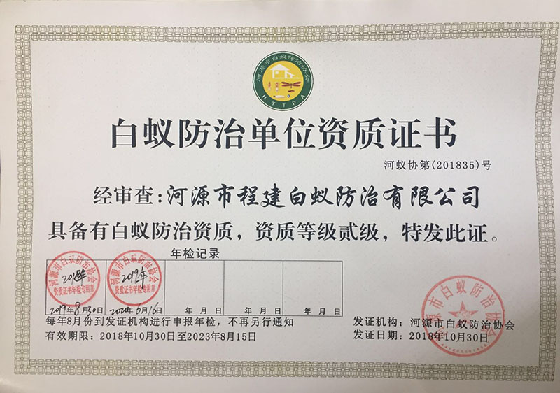 白蟻防治單位資質(zhì)證書